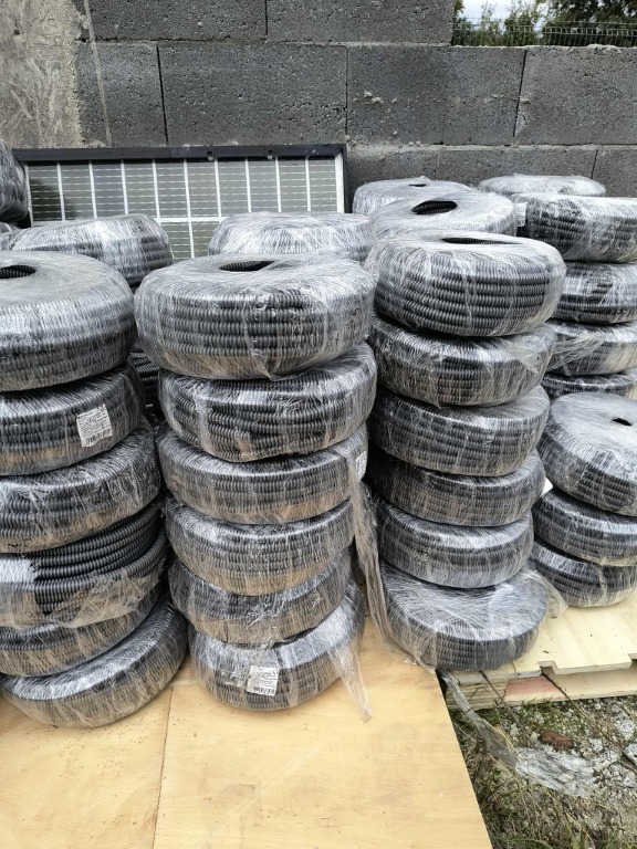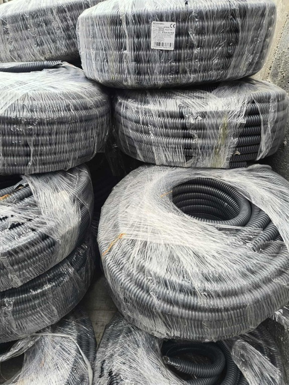 Rura karbowana (peszel z pilotem) - PAWBOL. Produkt NOWY nadaje się do różnych zastosowań, w tym do prowadzenia przewodów elektrycznych lub innych mediów. Rury są nowe, nie używane. W ofercie: