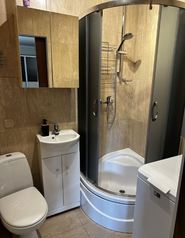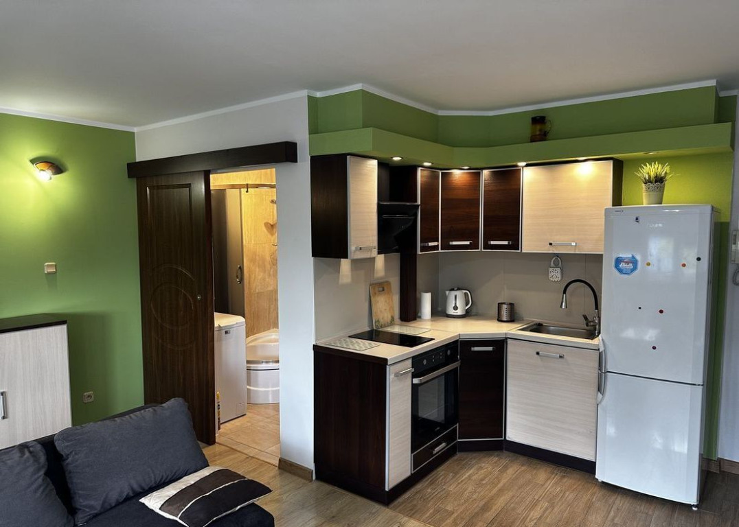 pełne wyposażenie: pralka, prysznic, szafki, zabudowa kuchenna, telewizor,