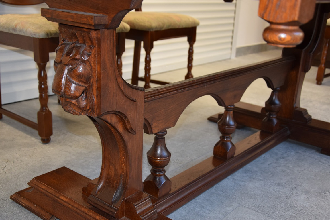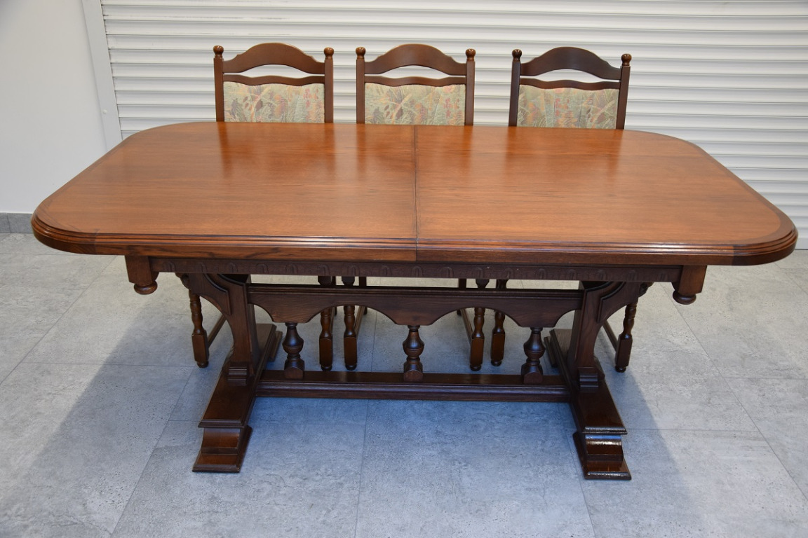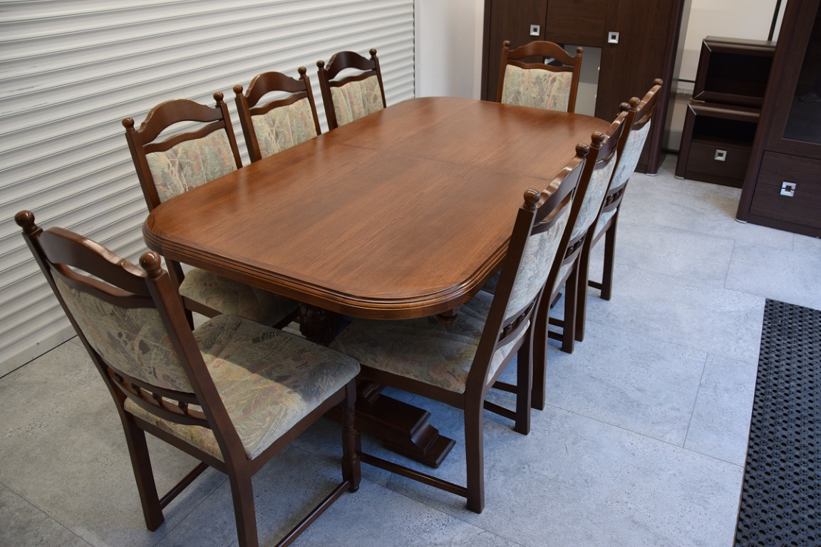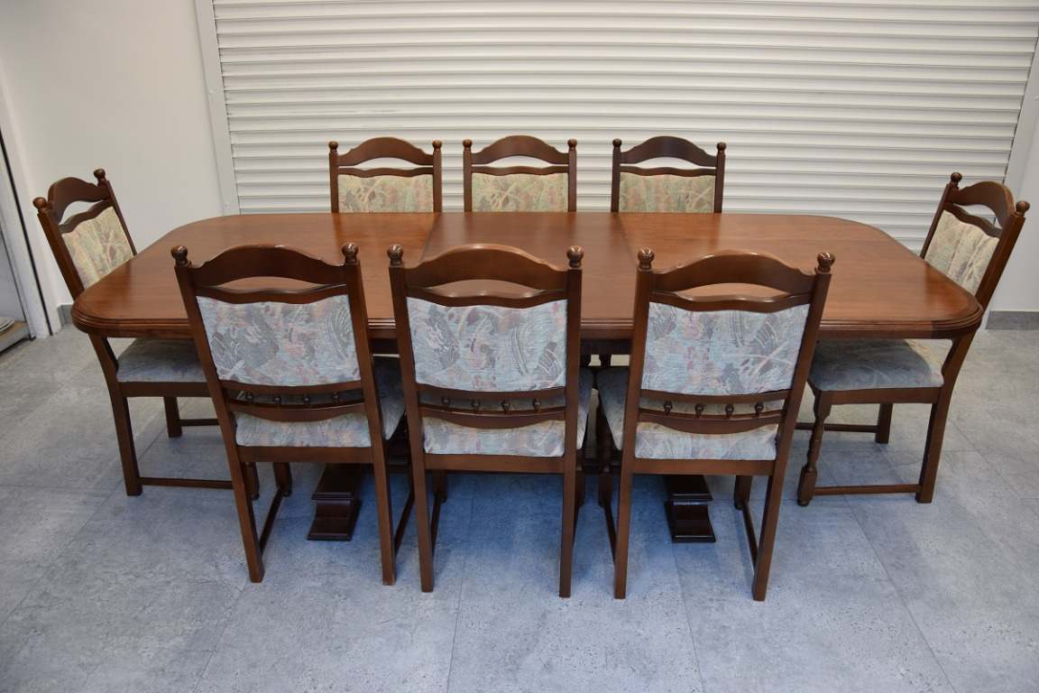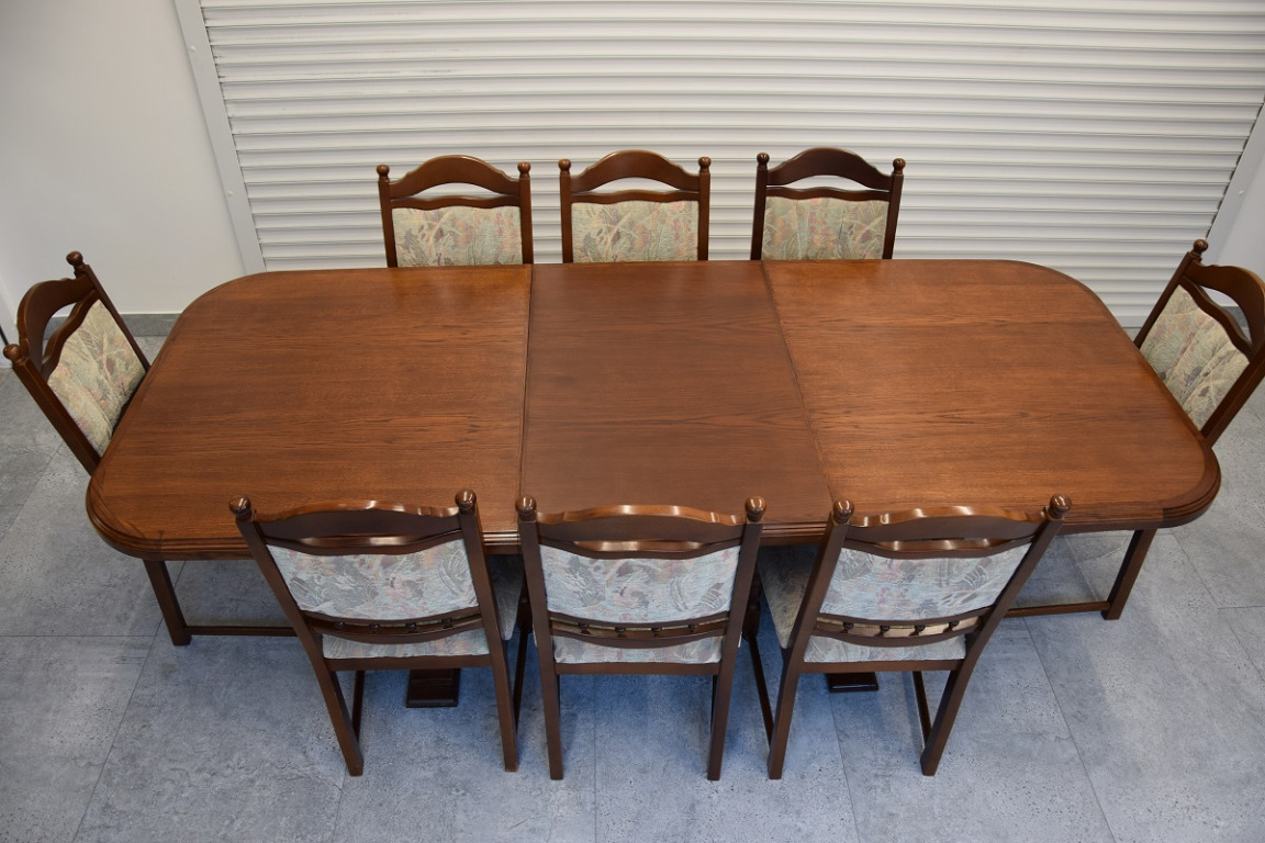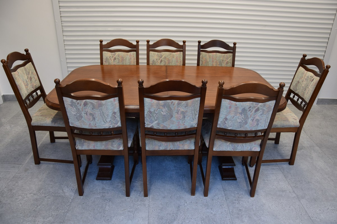 sprzedam stabilny rozkładany stół i 8 krzeseł,stół i krzesła wykonane z drewna dębowego - MEBLE GDAŃSKIE,cały komplet w super stanie,cena do małej negocjacji
