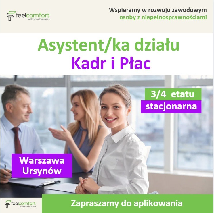 Asystent/ka Kadr i Płac - praca stacjonarna - 3/4 etatu - Warszawa Ursynów