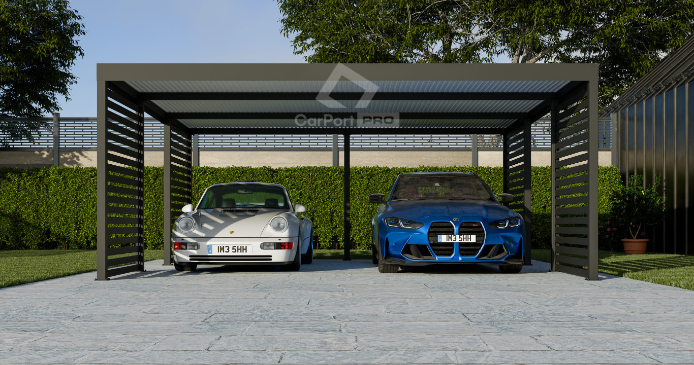 CarPort PREMIUM - wiata samochodowa 4x5 - antracyt - zabudowa CP104