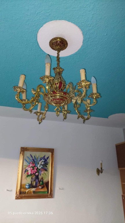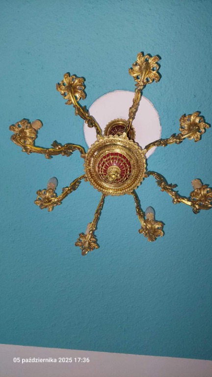 Sprzedam żyrandol z czystego mosiądzu ośmioramienny ,ręcznie robiony stan bardzo dobry .istnieje możliwość wysyłki za dodatkową opłatą pocztową lub kurierską ,lub odbiór własny w Warszawie na Natolinie kontakt tel. 505 138 084 domewn@o2.pl