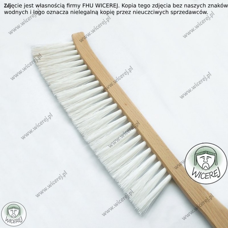 Posiadamy w sprzedaży nowe zmiotki, miotełki pszczelarskie. Zmiotka, szczotka - wykonana z twardego drewna jesionowego, posiada 1 rząd sztucznego włosia i drewnianą profilowaną rączkę. Dodatkowo w rączce znajduje się otwór do powieszenia.
