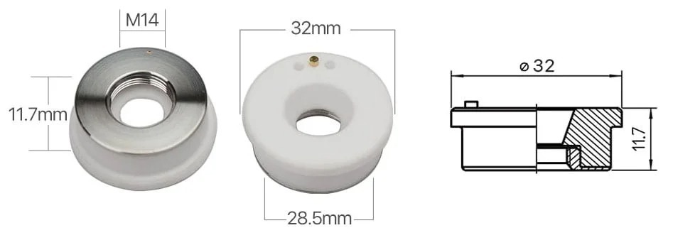 Część służąca do utrzymania dyszy tnącej w głowicy lasera. Pierścień uszczelniający wykorzystuje się w głowicach laserów fibrowych oraz w głowicach do cięcia metalu w ploterach laserowych CO2.