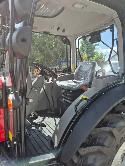 - kabina: panoramiczna, 4 słupkowa , komfortowa, z płaską podłogą, klimatyzowana, wentylowana, panel sterujący na błotniku, reg. kolumna kierownicza, reflektory robocze przód i tył, wycieraczka szyby przód, okno dachowe z szyberdachem, tylna szyba uchylna, drzwi boczne zamykane z kluczyka, lusterka zewn. 2 szt., radio z USB, lampa błyskowa, siedzenie Grammer