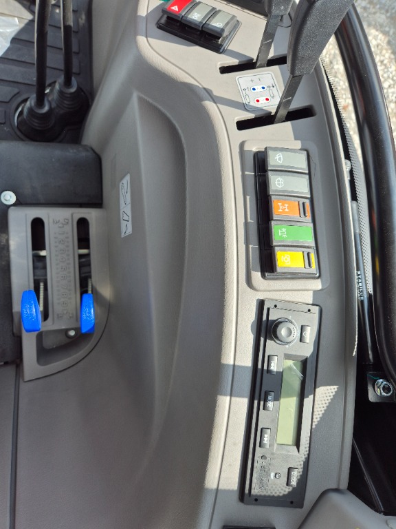 - kabina: panoramiczna, 4 słupkowa , komfortowa, z płaską podłogą, klimatyzowana, wentylowana, panel sterujący na błotniku, reg. kolumna kierownicza, reflektory robocze przód i tył, wycieraczka szyby przód, okno dachowe z szyberdachem, tylna szyba uchylna, drzwi boczne zamykane z kluczyka, lusterka zewn. 2 szt., radio z USB, lampa błyskowa, siedzenie Grammer