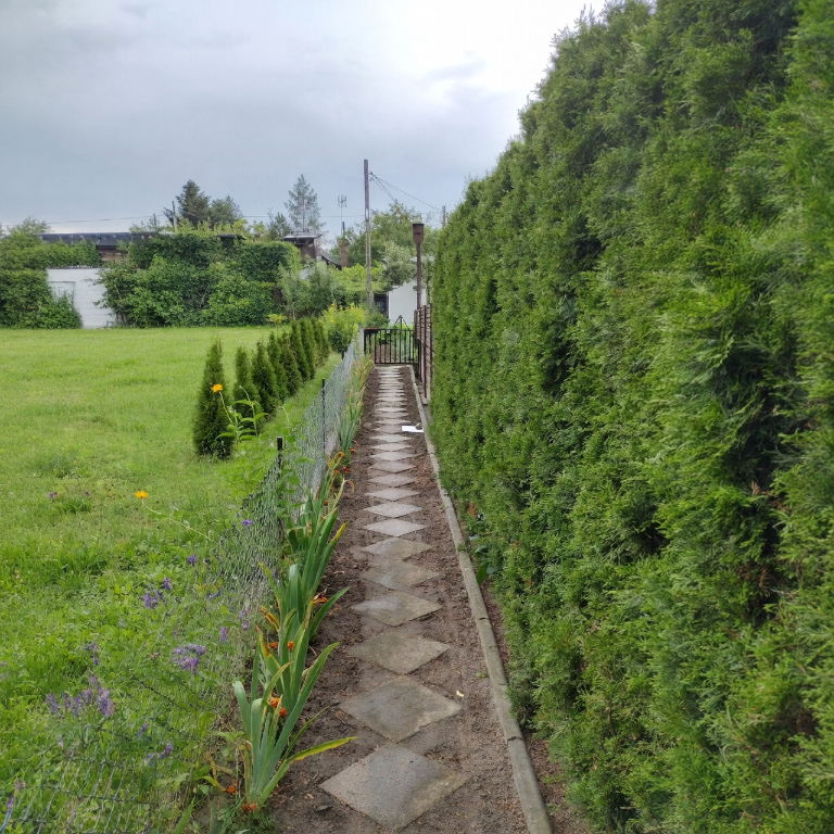 Działka jest ogrodzona i w pełni zagospodarowana, z licznymi nasadzeniami: krzewami ozdobnymi i owocowymi, kwiatami oraz drzewami owocowymi, m.in. śliwa, pigwa, wiśnia, jabłoń, agrest, winogrono, maliny, borówki.