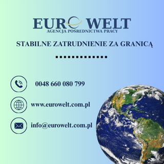 Agencja Pracy EURO WELT (KRAZ 12809) to certyfikowane biuro, które od 2015 roku pomaga kandydatom znaleźć satysfakcjonujące zatrudnienie w krajach niemieckojęzycznych. Zapewniamy Państwu przygotowanie do wyjazdu poprzez skompletowanie i tłumaczenie dokumentów aplikacyjnych a także zapewniamy opiekę przez cały okres zatrudnienia.