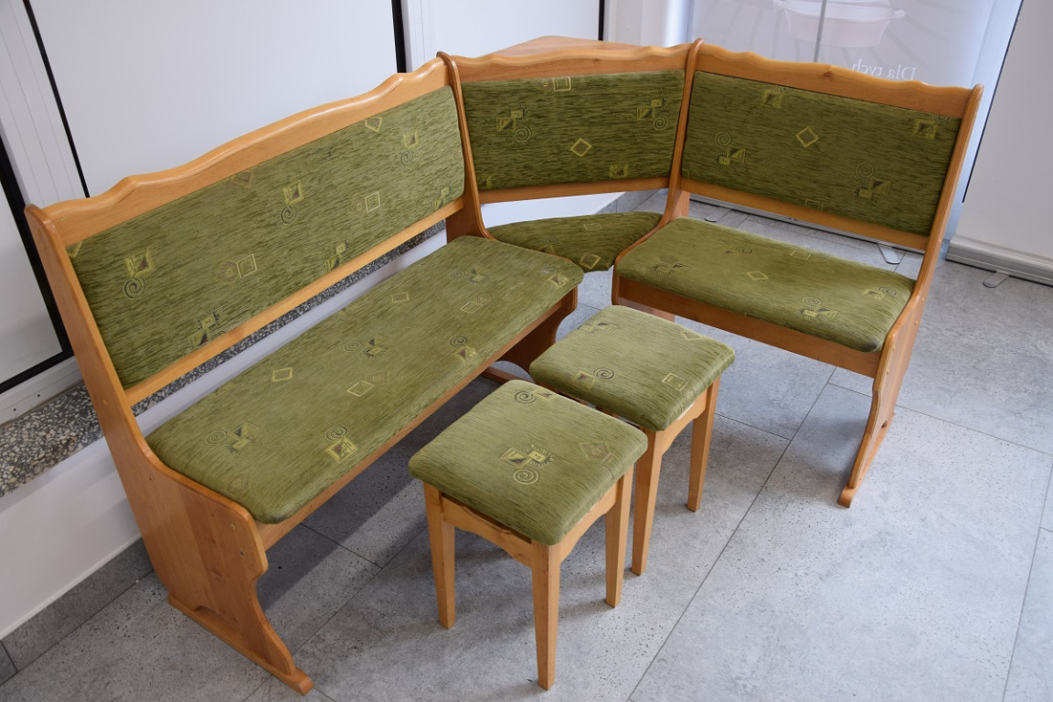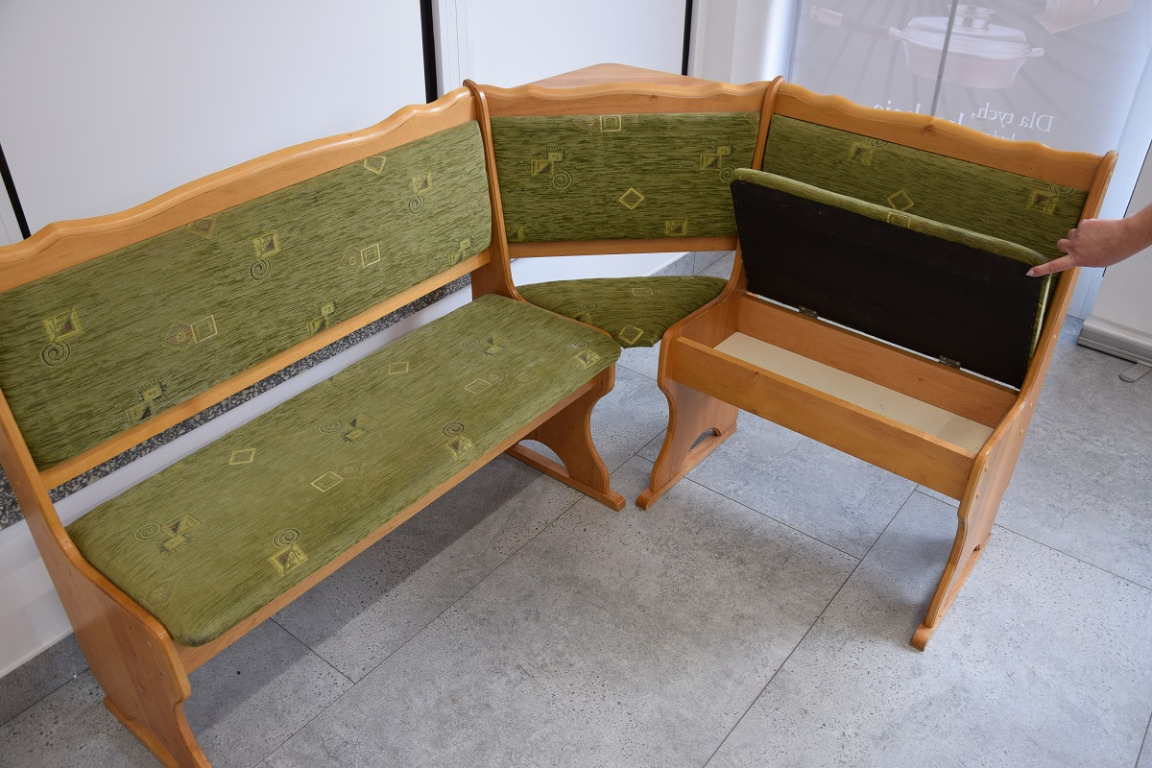 sprzedam narożnik kuchenny z dwoma taboretami,narożnik posiada dwa praktyczne schowki pod siedziskiem,cały komplet w dobrym stanie