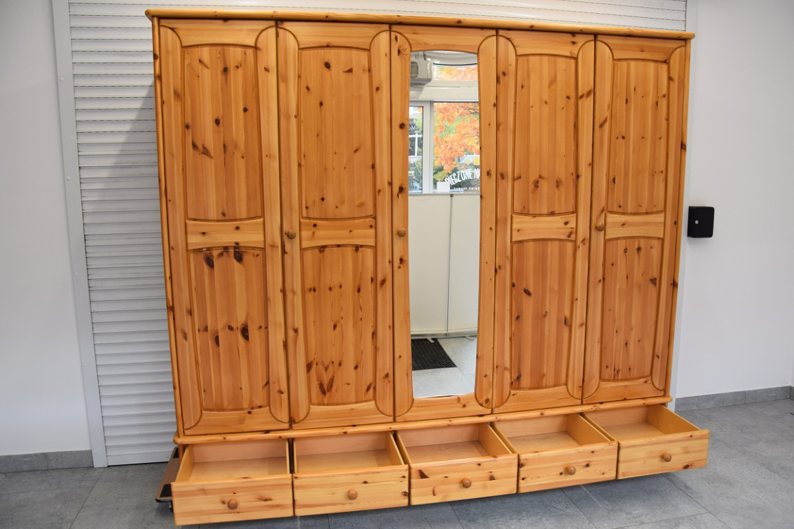 sprzedam elegancką praktyczną i pojemną szafę wykonaną z drewna sosnowego,stan szafy idealny jak nowa