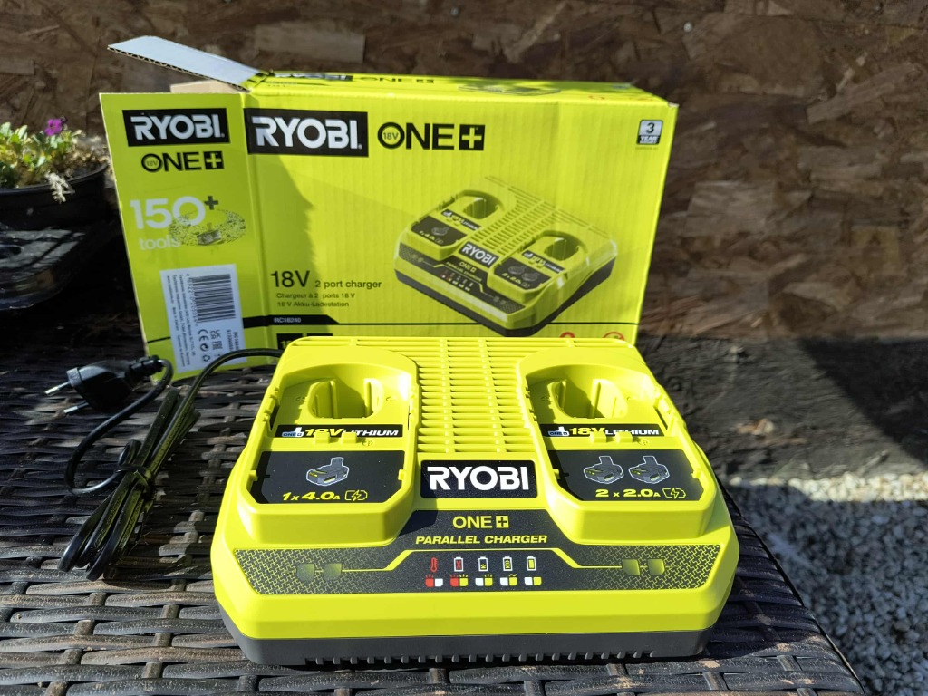 Ładowarka 2-stanowiskowa Ryobi One+ 18V doskonale nadaje się do ładowania dwóch akumulatorów litowych. Jest w stanie ładować pojedynczy akumulator z szybkością 4 amperów na godzinę lub 2 akumulatory jednocześnie z szybkością 2 amperów na godzinę każdy.
