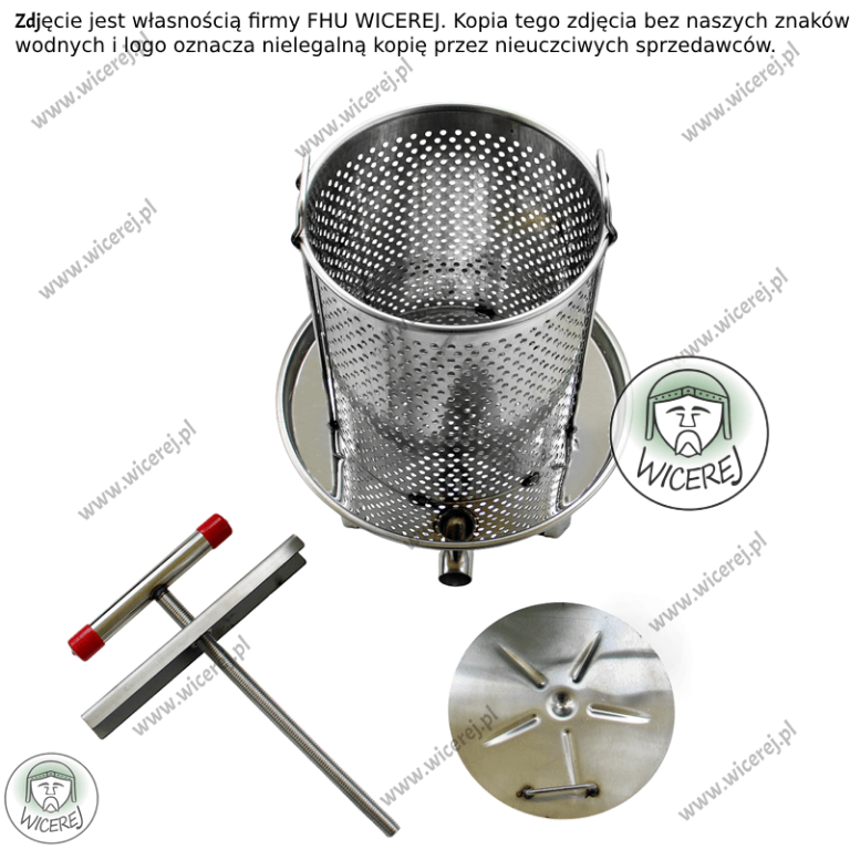 • perforowanego kosza na odsklepiny (lub owoce) – wykonanego ze stali nierdzewnej kwasoodpornej