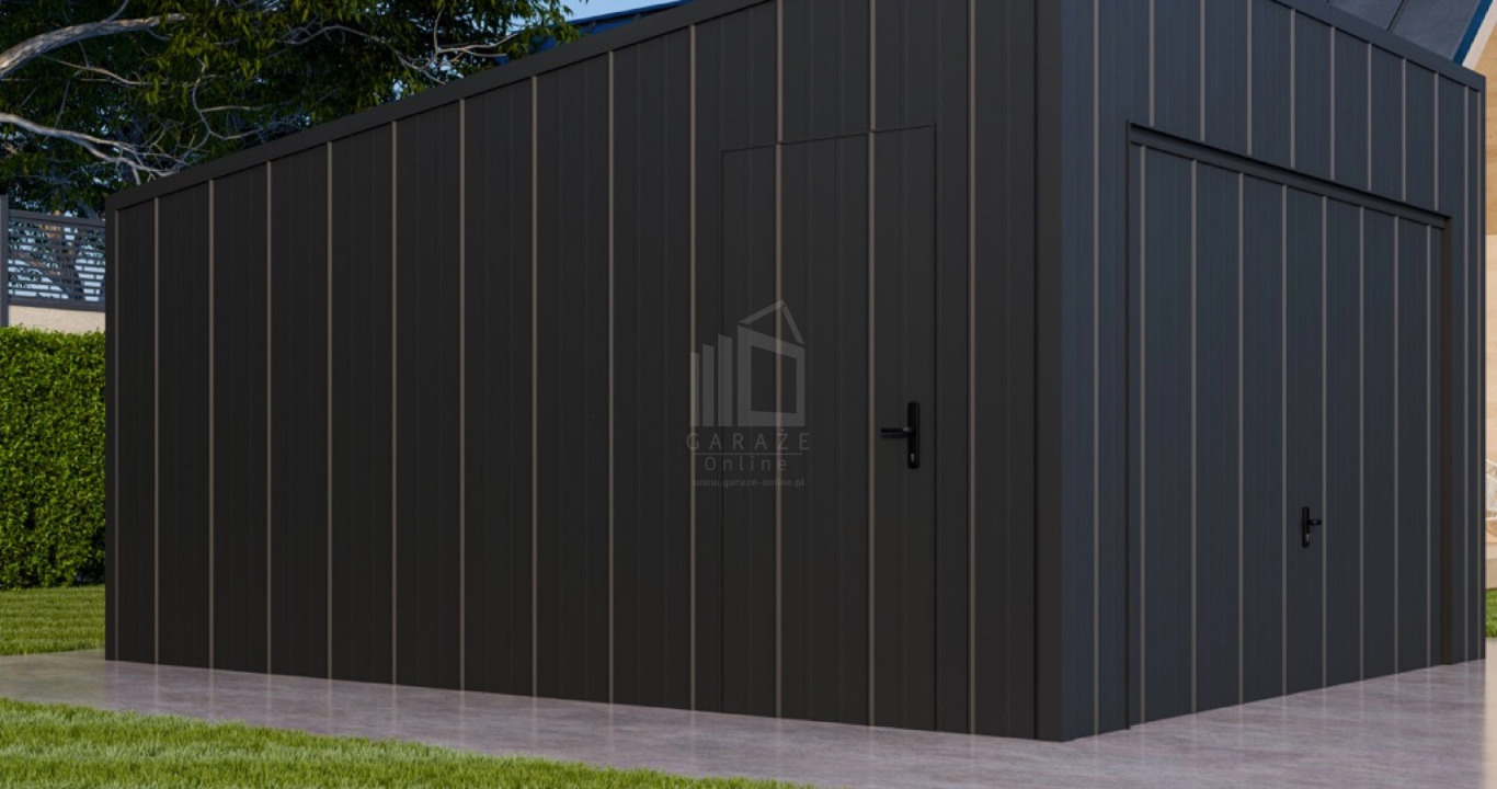 Garaż blaszany 6x6m - brama segmentowa - drzwi - blacha na rąbek - dach spad w tył ID1012