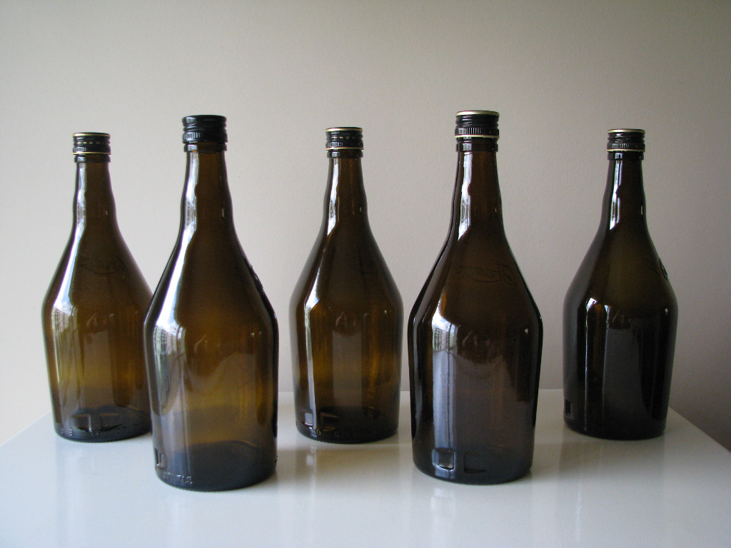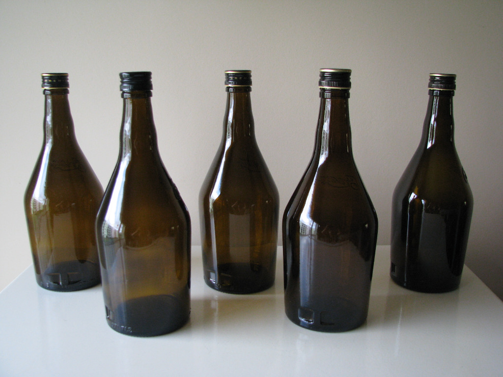 Sprzedam butelki z ciemnego, brązowego szkła o pojemności 0,7 l zakręcane na nakrętki.