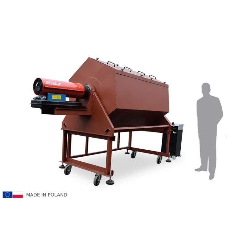 Swobodne i dokładne mieszanie się suszonego materiału zapewnia bęben obracany za pomocą silnika elektrycznego o mocy 1,1 kw – 400v z zastosowaną przekładnią 1:50 - 14/obrotów na minutę, z możliwością obracania się w obu kierunkach.