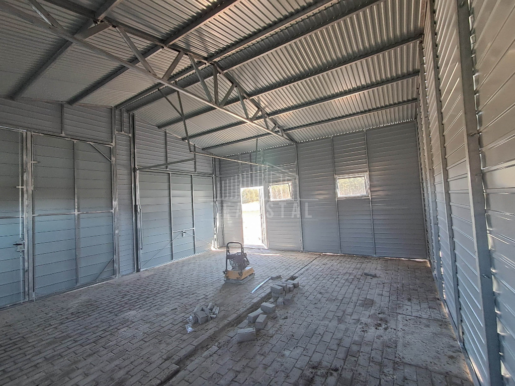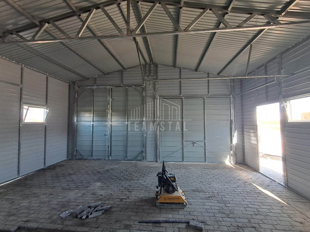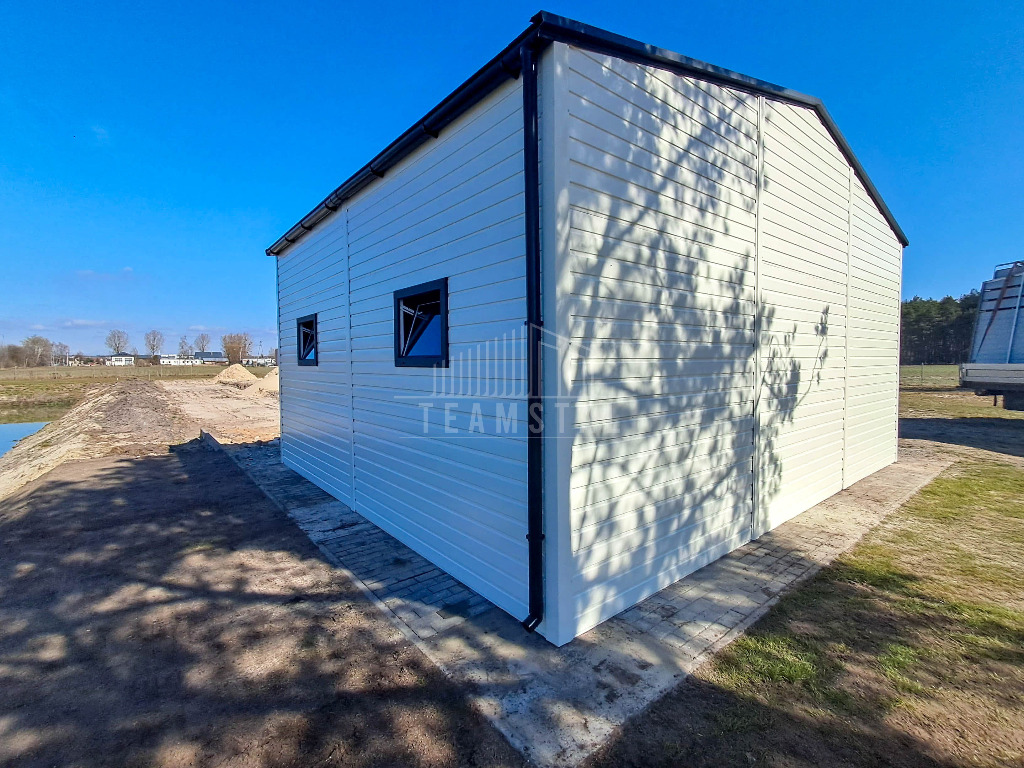 Garaż blaszany 4x5m - brama uchylna - drzwi - blacha na rąbek - dach dwuspadowy ID1003