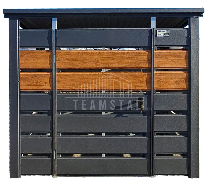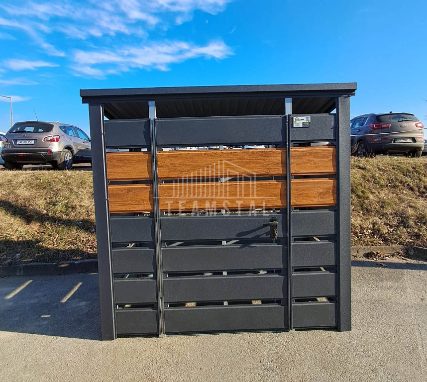 Wiata śmietnikowa - Schowek 4,5x2m - brama dwuskrzydłowa - Antracyt - dach spad w bok TS1105