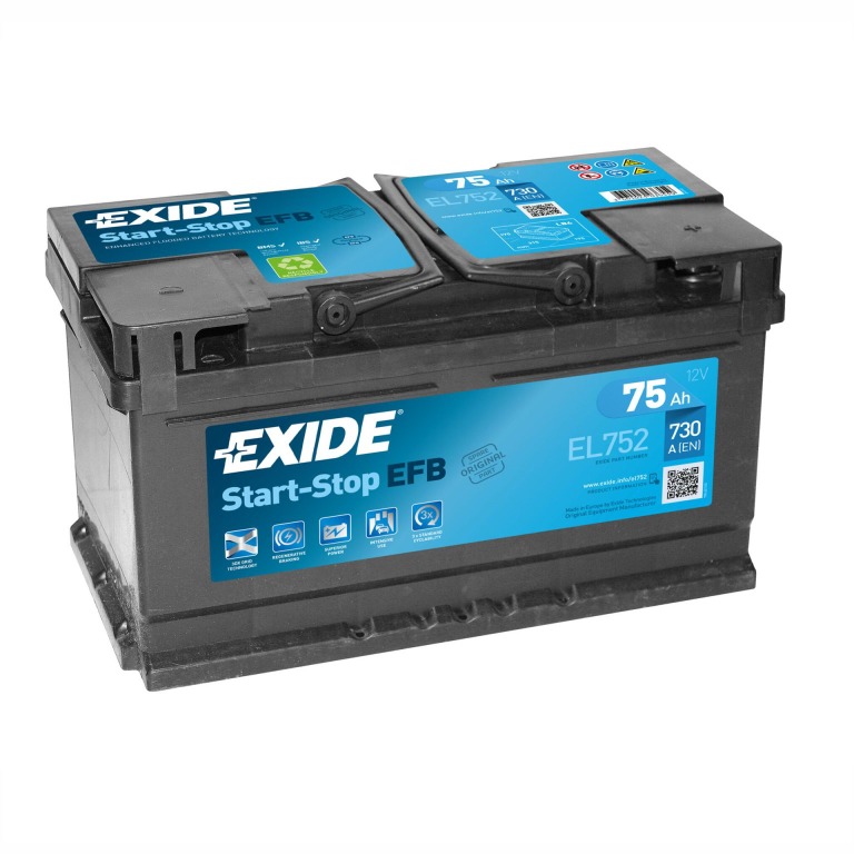 Akumulator 75Ah 730A EN Exide EFB (LB4) prawy plus