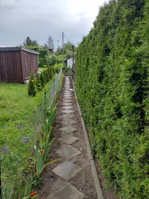 Działka jest ogrodzona i w pełni zagospodarowana, z licznymi nasadzeniami: krzewami ozdobnymi i owocowymi, kwiatami oraz drzewami owocowymi, m.in. śliwa, pigwa, wiśnia, jabłoń, agrest, winogrono, maliny, borówki.