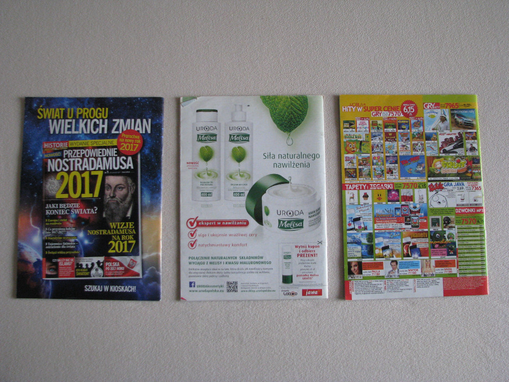 Czasopisma w miękkiej okładce o wymiarach 20,5 cm x 29 cm, zawierają 52 strony, są w stanie bardzo dobrym, kompletne, bez zagięć, podkreśleń, nieprzyjemnych zapachów itp