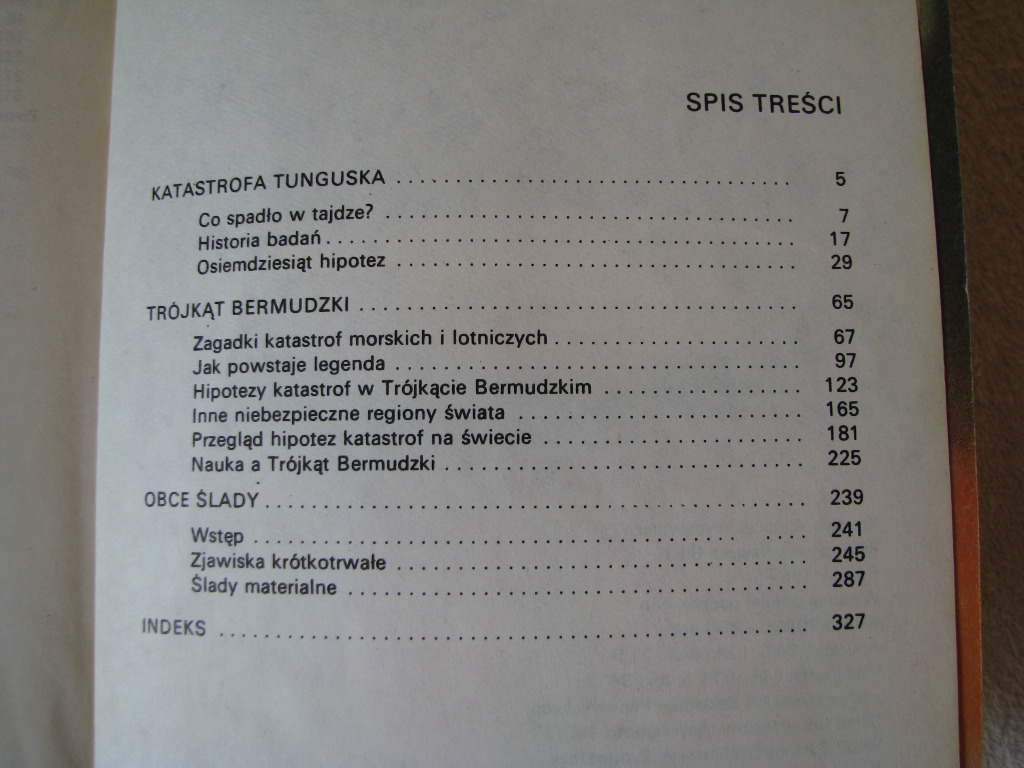 Podejmuje ona próby wyjaśnienia zagadki meteorytu tunguskiego, trójkąta bermudzkiego i omawia przedmioty określane jako pochodzenia pozaziemskiego oraz niewyjaśnione zjawiska.