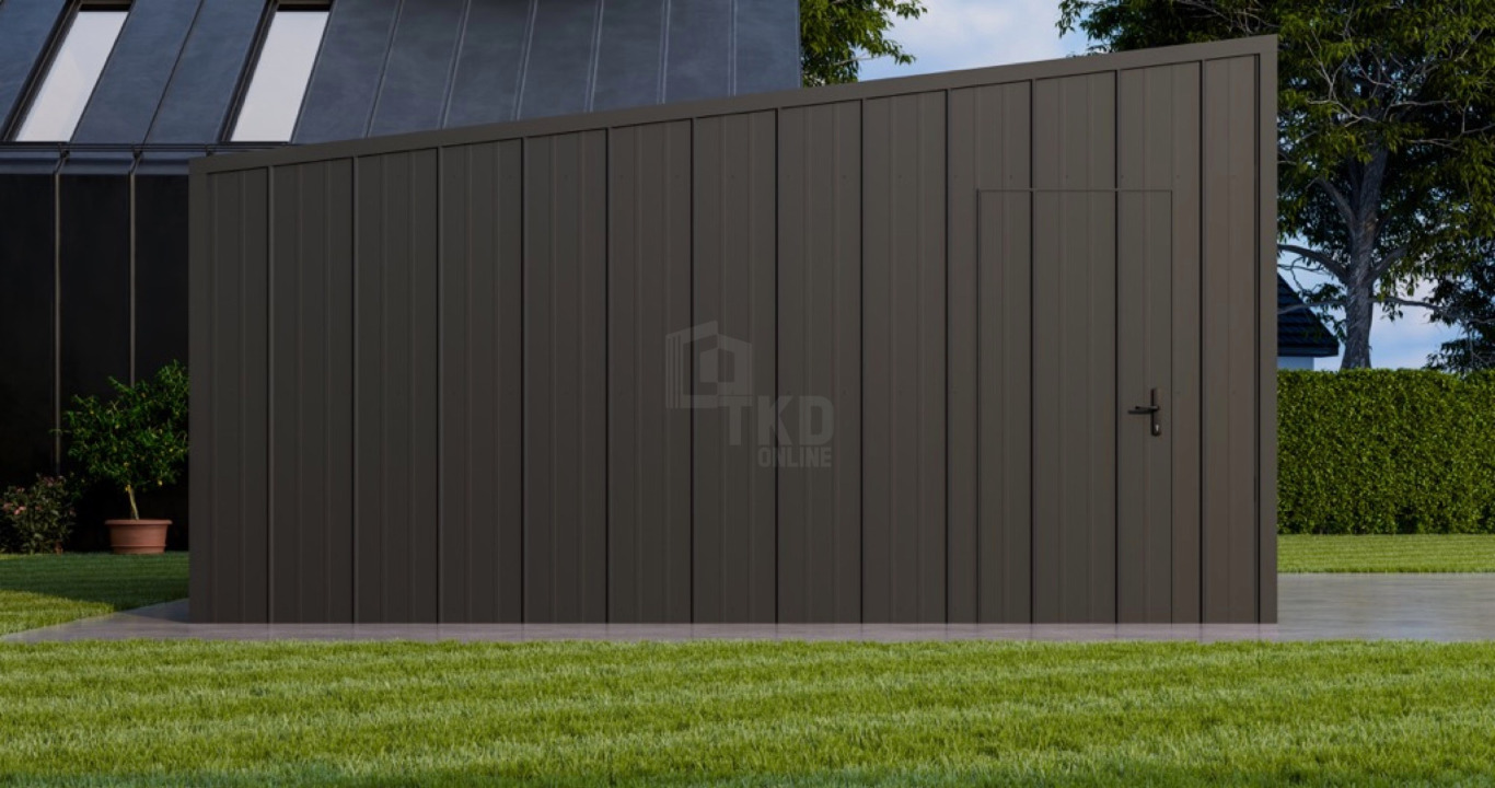 Garaż blaszany 4x6 - brama segmentowa - okno - drzwi - dach spad w tył - blacha na rąbek TKD375