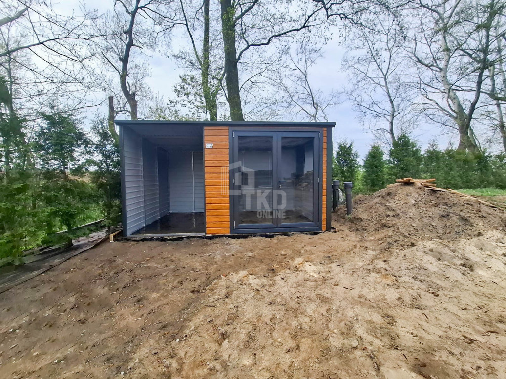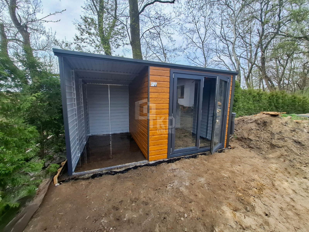 Domek Ogrodowy - Schowek 4 x 3,5 drzwi - Antracyt - dach spad w tył PRO262