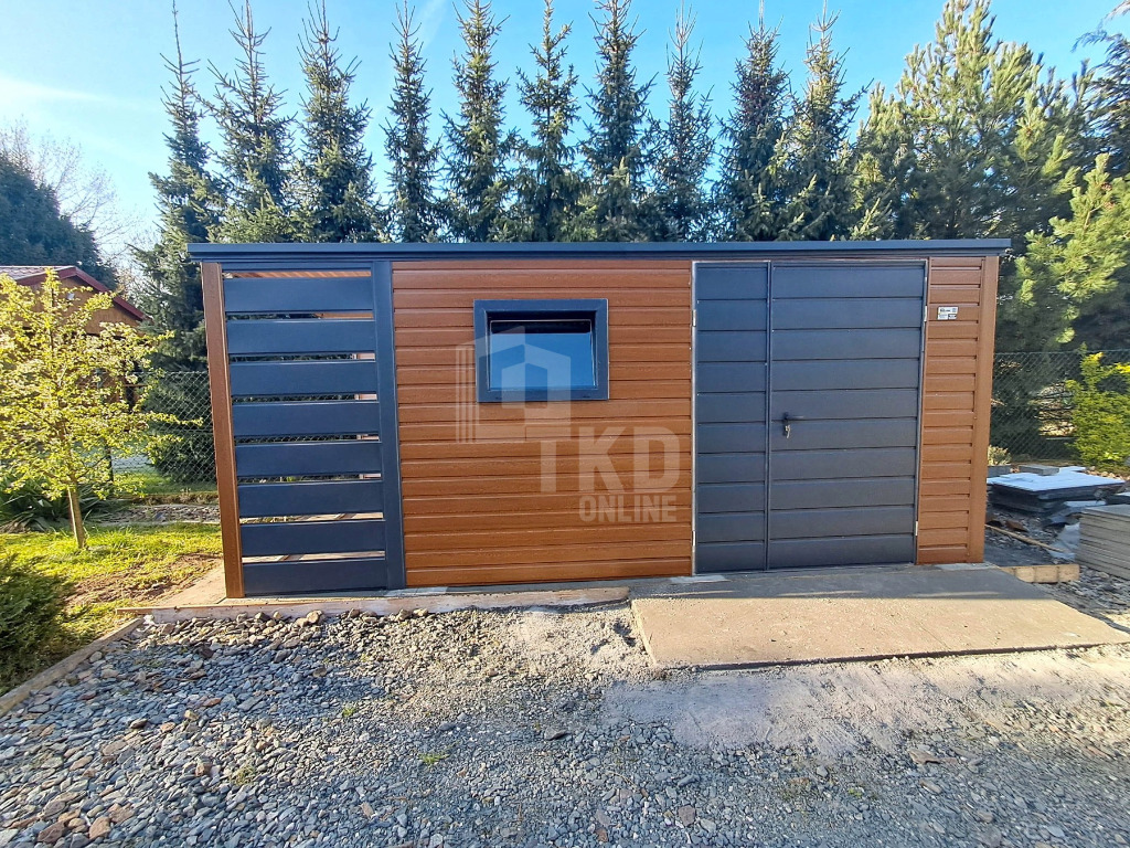 Wiata śmietnikowa 1,6x0,8m Antracyt + jasny orzech Schowek ogrodowy TKD395