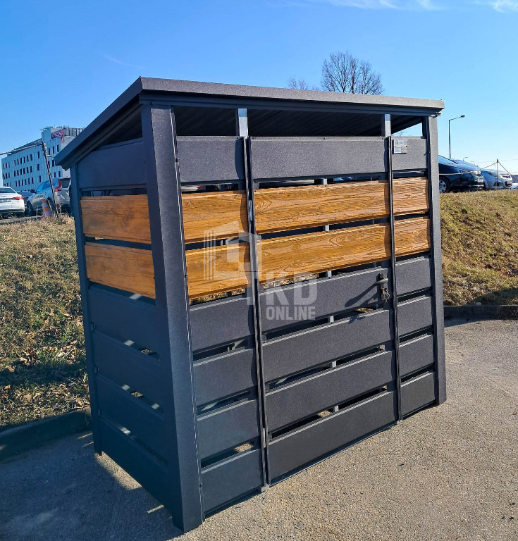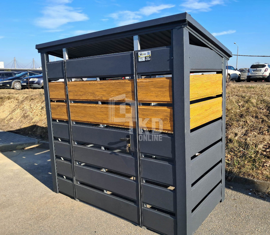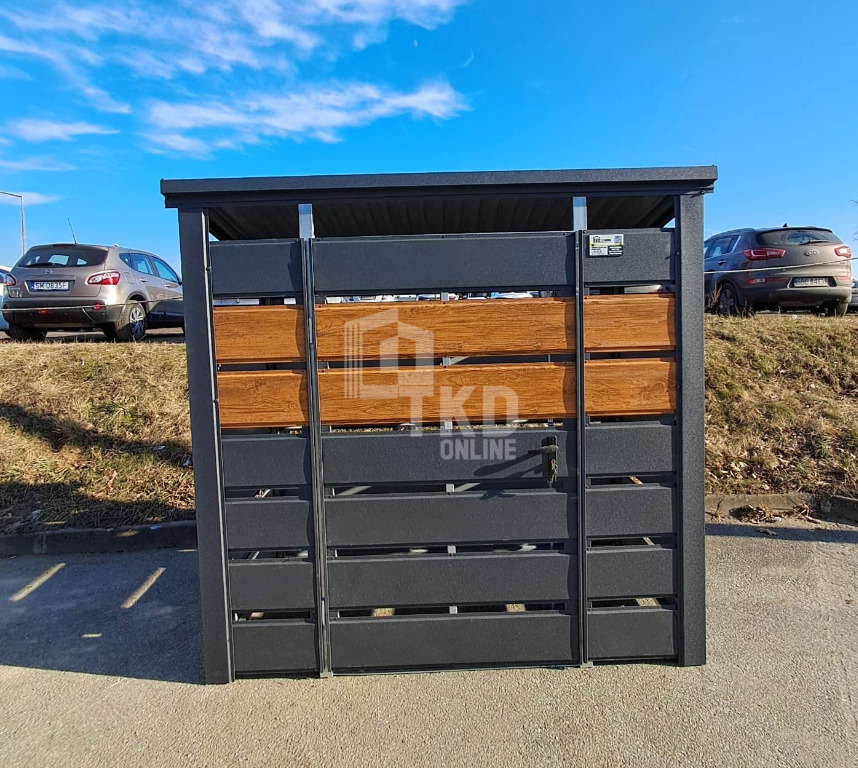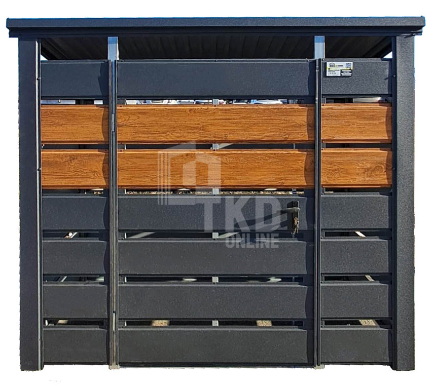 Wiata śmietnikowa - Schowek 4,5x2m - brama dwuskrzydłowa - Antracyt - dach spad w bok TKD393