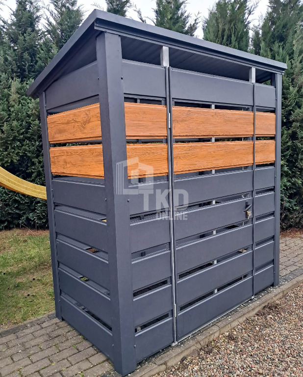 Wiata śmietnikowa 1,5x0,7m Antracyt + jasny orzech - spad w tył TKD394