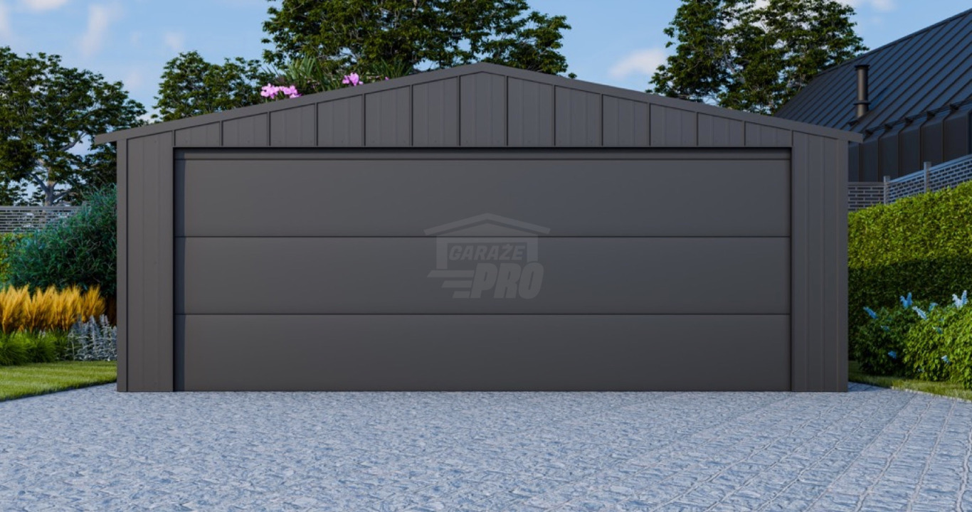Garaż blaszany 9,5x5,5m - 3x brama uchylna - drzwi - okno - antracyt - dach spad w tył GP600