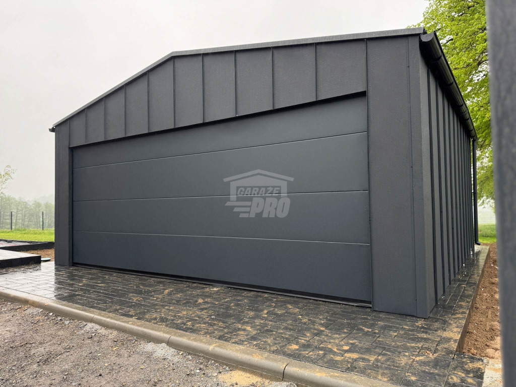 Garaż blaszany 3x9m - brama dwuskrzydłowa - antracyt - dach spad w bok GP649