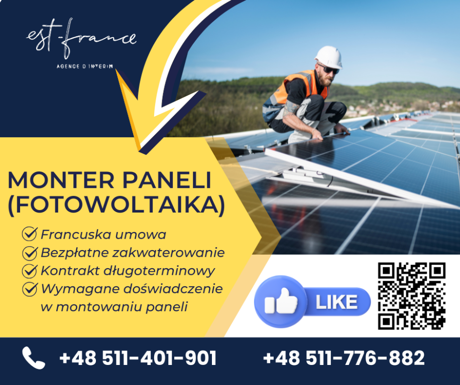 PRACA OD ZARAZ – MONTER PANELI PV!