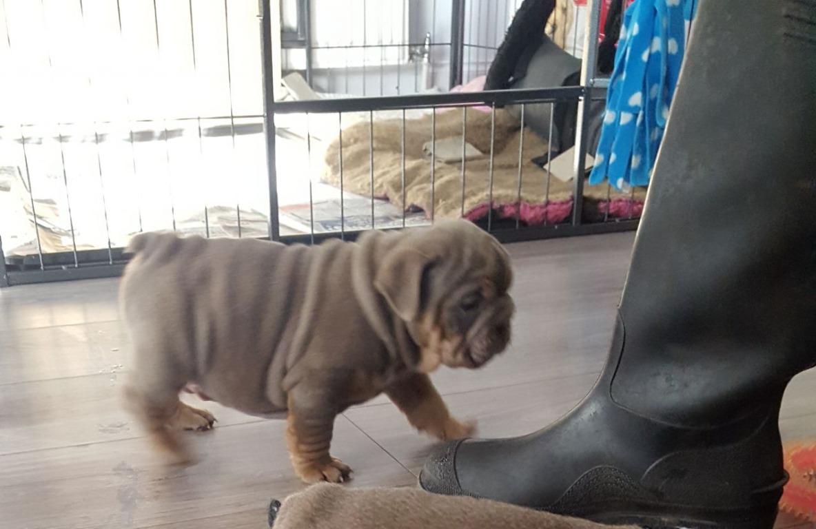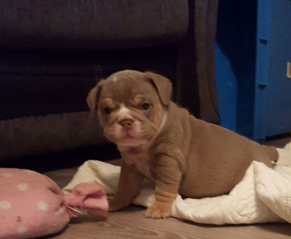 Mieliśmy miot buldogów angielskich. Były 2 psy i 1 suczka. Nadal mamy dostępne 1 psa i 1 suczkę. Wychowywane są w otoczeniu moich dwójki dzieci, a także innych zwierząt, więc świetnie dogadują się z dziećmi i innymi zwierzętami.