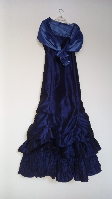 Sprzedam ekskluzywną suknię wieczorową na studniówkę firmy ROMA TEX. Suknia jest do kostek, w kolorze granatowym, w rozm. 38, Suknia jest niesztampowa, więc na balu wyróżniać się będzie niepowtarzalnym urokiem i stylem wśród pozostałych. Do sukni specjalnie została uszyta dodatkowo narzutka. Cena 450 zł.