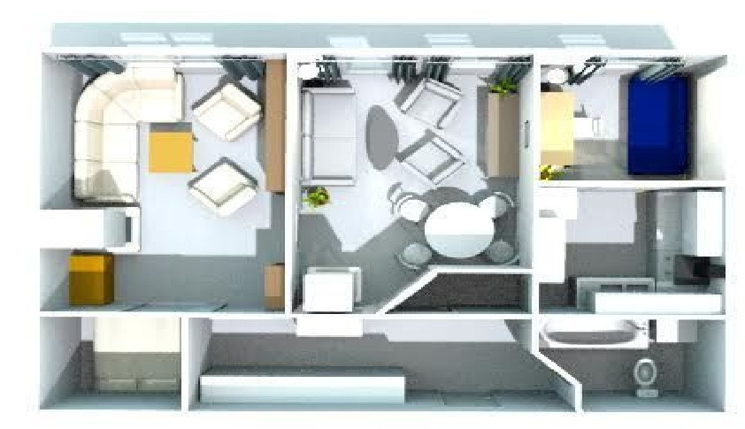 Mieszkanie składa się z: przestronnego pokoju z aneksem kuchennym (ok. 22 m²), sypialni (ok. 10 m²), przedpokoju (ok. 5 m²), łazienki (ok. 3,5 m²), osobnej toalety (ok. 1,5 ...