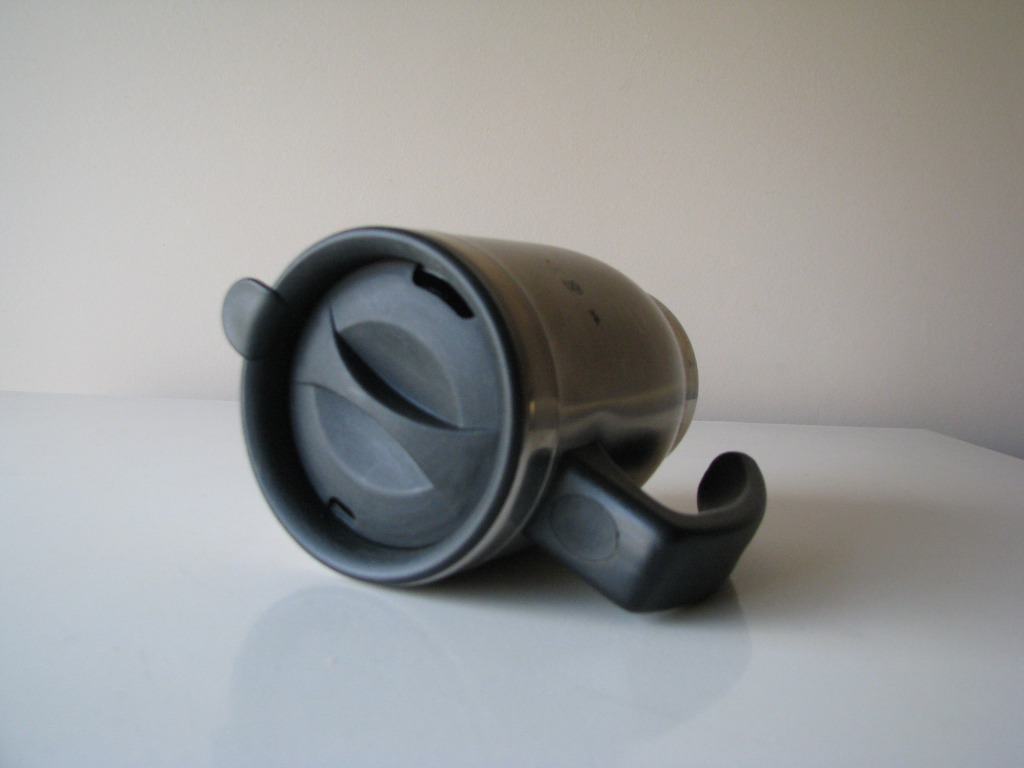 Pokrywka i uchwyt wykonane są z plastiku. Otwór w pokrywce umożliwia picie bez otwierania kubka (system ONE TWIST).