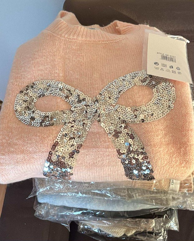 sweterki z wiskozą, cekinowa kokardka x 11 sztuk