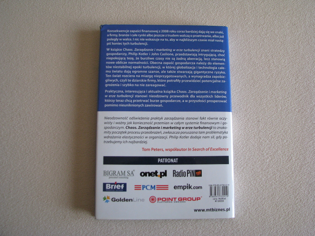 Sprzedam książkę Philipa Kotler i John A. Caslione „Chaos. Zarządzanie i marketing w erze turbulencji”, wydaną w 2009 r przez wydawnictwo MT Biznes.