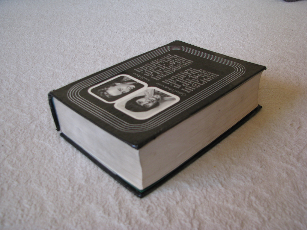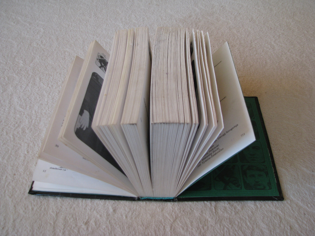 Książka zszywana, w twardej, laminowanej oprawie, o wymiarach 17 cm x 12,5 cm x 5 cm, zawiera 752 strony.