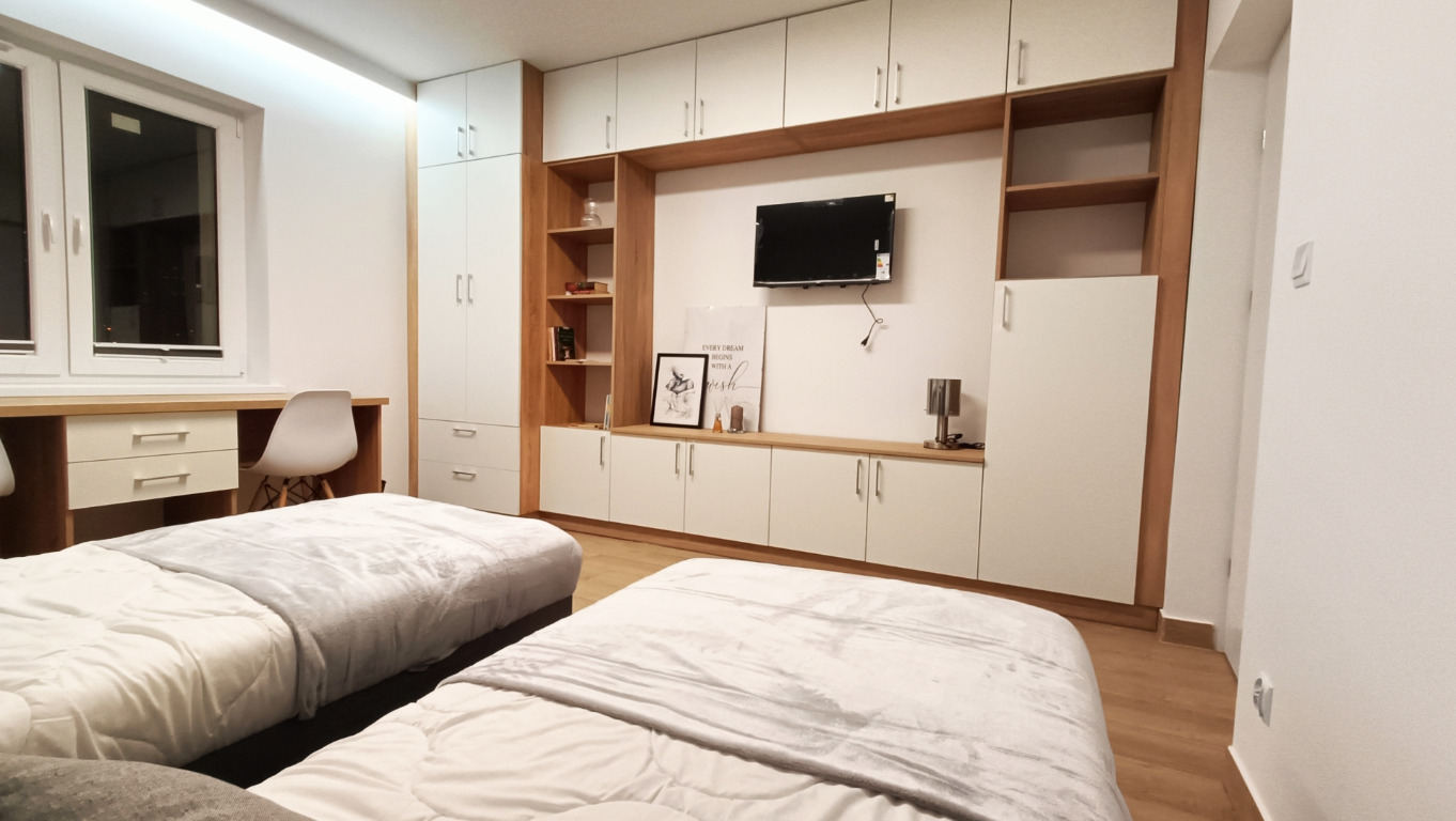 Jeśli szukasz wygodnego, nowego i w pełni wyposażonego pokoju na wynajem w Pile, to ta oferta będzie jedną z najlepszych na rynku. Wszystkie pokoje zostały zaprojektowane tak, aby zapewnić maksymalny komfort — od solidnych mebli na wymiar, przez nowoczesne oświetlenie LED, po szybkie Wi-Fi i Smart TV w każdym pomieszczeniu. Lokalizacja na Osiedlu Górnym gwarantuje bliskość centrum, sklepów, Uczelni UAM, terenów zielonych i komunikacji miejskiej, co czyni to miejsce idealnym zarówno dla studentów, jak i osób pracujących. Mieszkanie jest świeże, czyste, po generalnym remoncie i od razu gotowe do wprowadzenia się, dzięki czemu oszczędzasz czas i nie musisz inwestować w żadne dodatkowe wyposażenie.