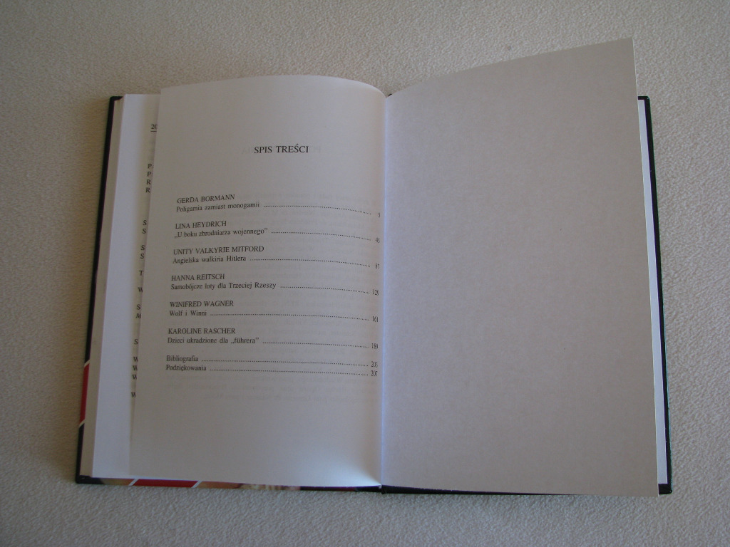 Autorka opisuje biografie: Gerdy Bormann, Liny Heydrich, Unity Mitford, Hanny Reitsch, Winifred Wagner i Koroline Rascher - towarzyszek życia narodowych socjalistów, kobiet z kręgu nazistowskich elit, zagorzałych nazistek służących hitlerowskiemu reżimowi z fanatycznym zapałem, nierzadko narażając swe życie. Książka przedstawia ich codzienne życie, rolę, jaką grały oficjalnie, i jaką za kulisami hermetycznego otoczenia Hitlera oraz ich wpływ na wydarzenia historyczne.