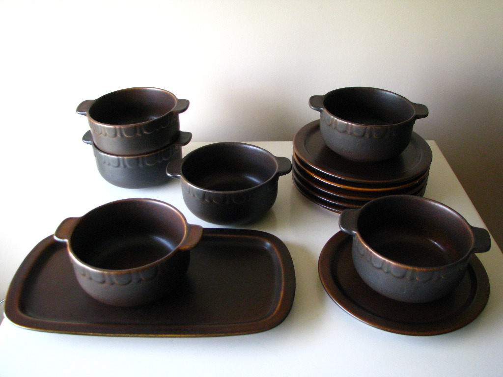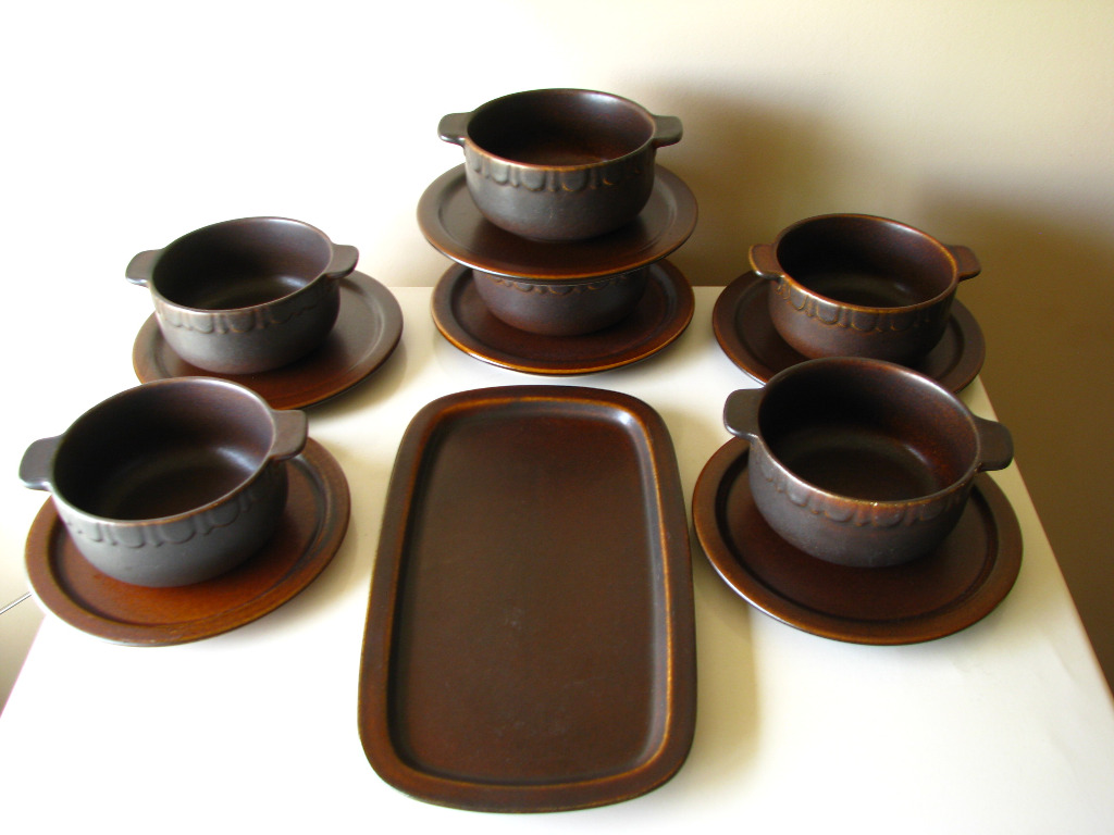 Sprzedam oryginalny zestaw naczyń ceramicznych wyprodukowany przez Friesland Melitta, Germany z serii Katen – Geschirr - klasycznej linii produktów Friesland, produkowanych od lat 60-tych.