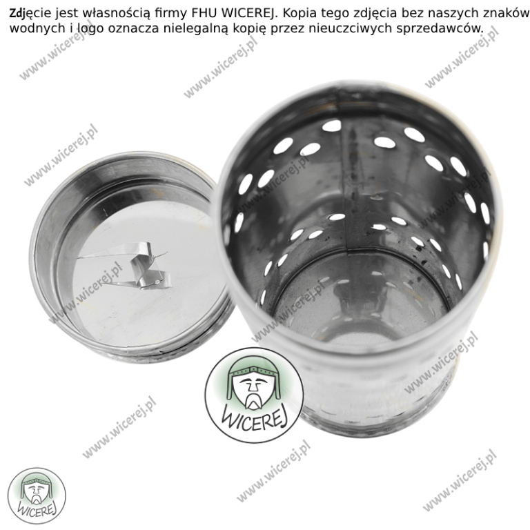 Pojemnik pozwala na właściwe spalanie się knotów siarkowych do odkażania uli, ramek, pomieszczeń.