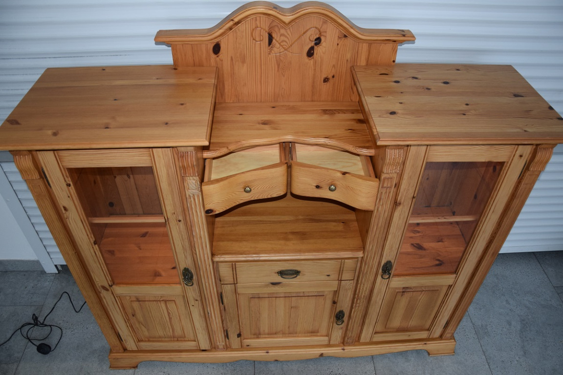 sprzedam piękny i stylowy kredens w całości wykonany z drewna sosnowego,posiada podświetlenie,stan idealny jak nowy