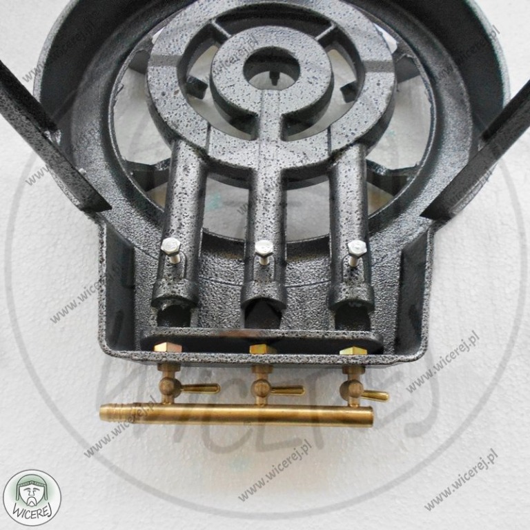 Palnik gazowy wykonany jest z żeliwa malowanego proszkowo. Taboret gazowy wyposażony jest w trzy niezależne od siebie zawory, które umożliwiają płynną regulację mocy płomienia. Regulacja mocy płomienia odbywa się za pomocą 3 pokręteł (zaworów). Taboret dostosowany jest do gazu propan butan.