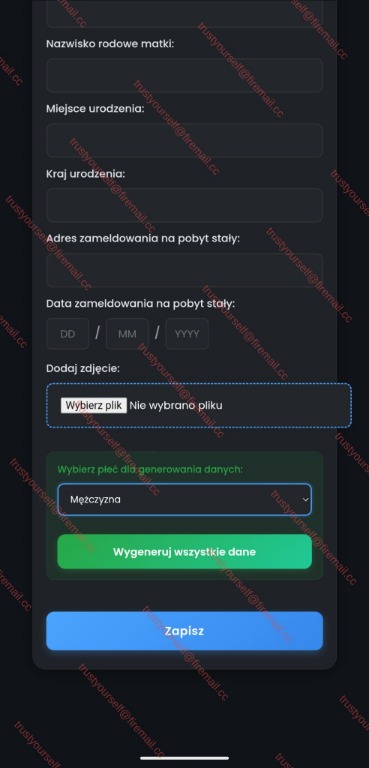 - Możliwość wygenerowania losowych danych po wyborze płci