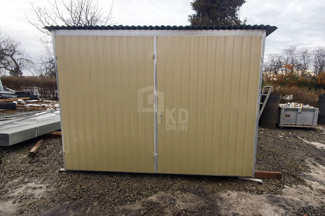 Garaż blaszany 3x5m - II Gatunek - Garaż Blaszak na budowę - złoty - dach spad w tył TKD404