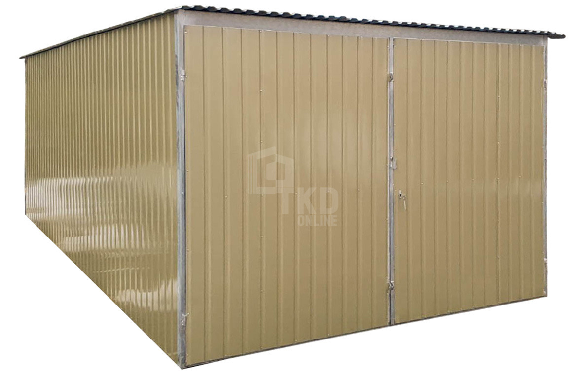Garaż blaszany 3x5m - II Gatunek - Garaż wolnostojący na budowę - złoty - dach spad w tył TKD402
