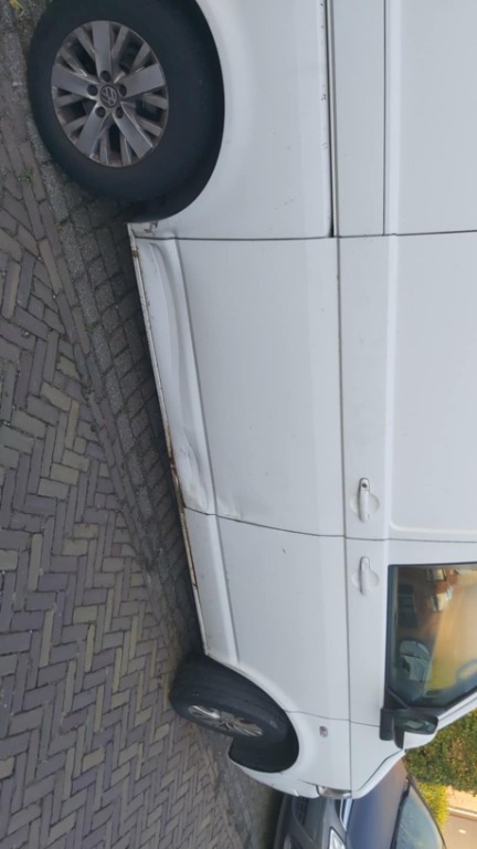 Drzwi boczne przesuwne – rolki wymagają naprawy, jest też wgniecenie widoczne na zdjęciu.